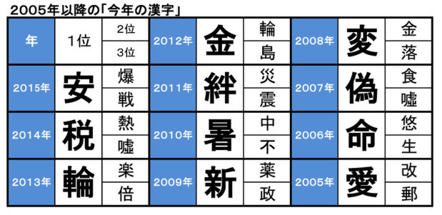 応募総数は12万9647票で、1位の「安」は5632票を集めた。2位は4929票の「爆」で、3位以下は「戦」「結」「五」が続いた。
