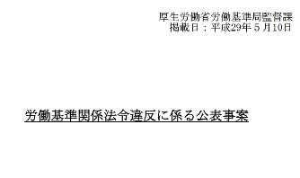 厚生労働省は10日、労働基準関係法令に違反したとして最近半年間に書類送検し、社名を公表した全国334件の一覧表を初めて作成し、同省ホームページ(HP)に掲載した。