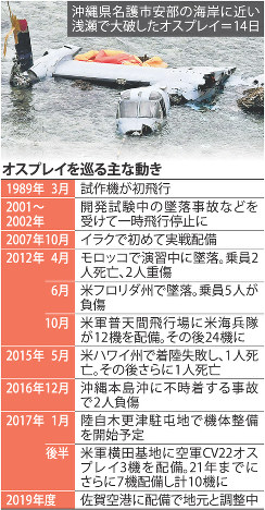 政府は19日、沖縄県の反発を織り込みつつ、米軍普天間飛行場(沖縄県宜野湾市)所属の垂直離着陸輸送機MV22オスプレイの飛行再開を容認した。20日には最高裁が普…