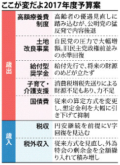 政府が22日に決定した2017年度予算案は、一部の高齢者に負担増を求める社会保障費の抑制策が与党の猛反発で後退するなど、歳出改革は踏み込み不足となった。政府は…