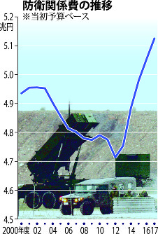 ◇防衛費、2年連続5兆円超 政府は2017年度予算案で防衛関係費を過去最大の5兆1251億円とし、2年連続で5兆円を突破した。前年度比では710億円(1・4%…