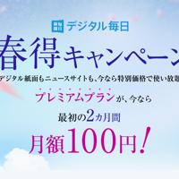 「デジタル毎日 春得キャンペーン」スタート!全国の毎日新聞朝夕刊やWSJの記事がデジタルで読めて2カ月間月額100円!!(2020/3/11)
