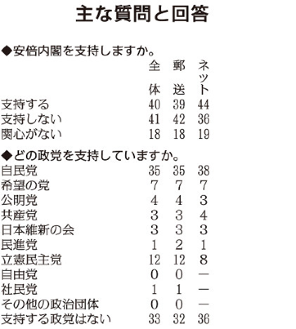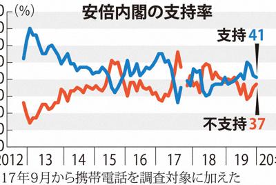毎日新聞が18、19両日に実施した全国世論調査で、安倍内閣の支持率は41%、不支持率は37%だった。昨年11月30日、12月1日に実施した前回調査から、いずれ…