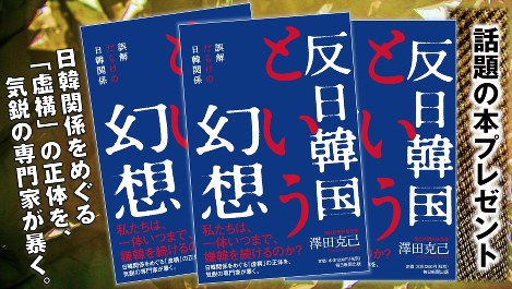 【書籍プレゼント】澤田 克己著「反日韓国という幻想 誤解だらけの日韓関係」 澤田 克己著「反日韓国という幻想 誤解だらけの日韓関係」を5名様にプレゼントします。【応募締切】2020年3月16日(月)