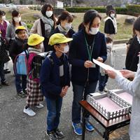 休校となった小学校での児童預かりの受付に並ぶ親子連れ=滋賀県湖南市の市立菩提寺小学校で2020年3月2日午前8時31分…