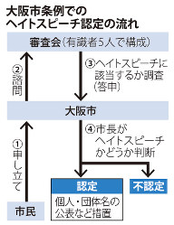 ヘイトスピーチの抑止を目指す全国初の大阪市条例が完全施行されて1日で2カ月になった。条例に基づき設置された審査会の会長で、元国連人権理事会諮問委員会委員の坂元…