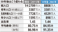 国立社会保障・人口問題研究所が10日公表した、2065年まで50年間の将来推計人口によると、50年後の合計特殊出生率は1・44と、12年の前回推計より上向くと…