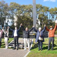 長崎市の爆心地公園では、市民団体「福島と長崎をむすぶ会」が集会を開き、被爆者や高校生ら15人が参加。午後2時46分に黙とうした後、原爆落下中心地碑そばで「人間…