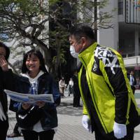 東日本大震災の発生から9年を迎えた11日、沿岸部を中心に大きな被害を受けた岩手県の地元紙・岩手日報社が那覇市の街頭で、復興の状況を伝える特別号外800部を市民…