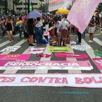 「国際女性デー」の8日、南米ブラジルの最大都市サンパウロで女性の権利向上を求めるデモが開かれた。女性への差別的発言で知られるボルソナロ大統領への抗議活動の色合…
