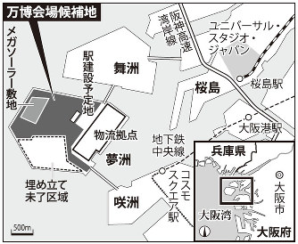 万博の立候補には、会場用地100ヘクタール以上を確保するのが通例。府は追加埋め立てによる費用負担を…