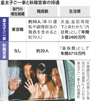 だが典範の改正には安倍政権の支持基盤でもある保守層の抵抗が強い。秋篠宮さまの呼称を皇太子としない政府の方針はこうしたことが背景にある。同様に典範改正が前提条件となる「皇太弟(こうたいてい)」という呼称案も検討の俎上(そじょう)から消えた。「秋篠宮」の呼称は陛下の退位後も続く見通しだ。