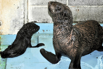 同館によると、キタオットセイの赤ちゃんは15日午前8時半ごろ、スタッフが飼育舎で生まれているのに気づいた。父親のタロは以前、宮城県の水族館で飼育されていたが、2011年の東日本大震災で被災したため、12年に同館にやってきた。