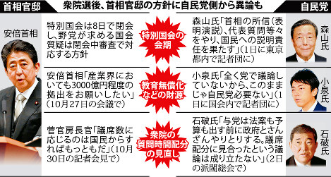 今月1日始まった特別国会は、首相指名選挙の後、何の質疑も行われず、質問時間の見直しをめぐる与野党の対立が続いている。