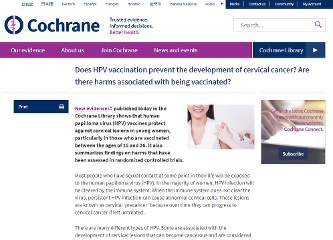 医学論文を総合的に評価する民間非営利組織コクラン(本部・英国)は9日、子宮頸(けい)がんなどを予防するHPV(ヒトパピローマウイルス)ワクチンの有効性と安全性に関する評価結果を公表した。過去8年間に発表された日本や他国の26件の比較試験を評価した結果、同ワクチンによる子宮頸がんの前段階の予防効果に高い確実性が確認された一方、副反応は非接種群と同程度で「同ワクチンが深刻な副反応を起こすとの証拠は見られなかった」としている。