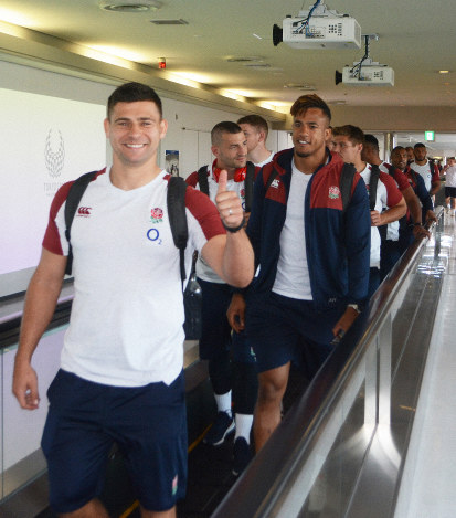 この日、ラグビーW杯に出場する2チームが成田空港に到着した。このうちイングランド代表は午後1時半ごろに到着したものの送迎用バスが到着せず、機内で約2時間待機を余儀なくされた。ただ、飛行機を降りた選手たちはピースサインをし、前回大会で日本を率いたエディー・ジョーンズ監督も笑顔を見せた。【中村宰和】