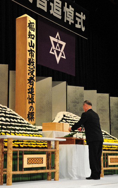 福知山市主催の戦没者追悼式が24日、同市中ノの市厚生会館で営まれ、参列者が3519人の市出身戦没者の冥福を祈り、平和への誓いを新たにした。