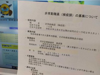 同検疫所によると、2月5日から10人の募集を始めた。職員は約60人いるが、新型コロナウイルスの水際対策の強化に伴い、発熱している入国者の確認などの業務に追われており、「応援が必要になった」(同検疫所)という。