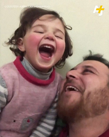中東カタールの放送局「アルジャジーラ」が運営する動画ニュースサイト「AJ+」によると、動画に登場するのは、イドリブ県に住むアブドラ・ムハンマドさんと3歳の娘。反体制派の一部が残っているとされる現地で、アサド政権側の空爆が続く中、アブドラさんは娘が怖がらないように「ゲーム」を考案し、爆音が聞こえたら笑うよう娘に教えた。