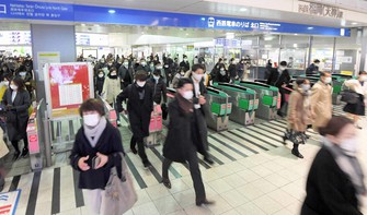 携帯電話販売会社に勤める男性(40)=福岡県柳川市=は午前8時過ぎ、福岡市中央区の西鉄福岡(天神)駅の改札を出た。「販売の仕事なので人と対面せざるを得ない」と、通勤時の混雑を含め感染への不安はつきない。初めて宣言が出た2020年4月と比べ周囲の緊張感も乏しく感じるといい「政府の感染防止対策は中途半端。本気で対応したいならばロックダウン(都市封鎖)を含めメリハリのある対応が必要」と強調した。