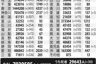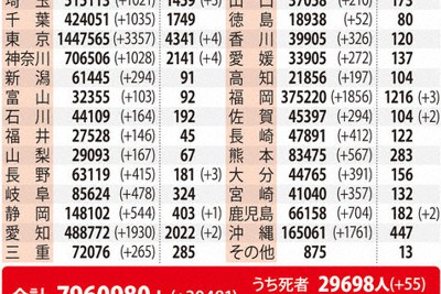 全国で新たに2万6960人の感染確認 栃木で女児死亡 新型コロナ