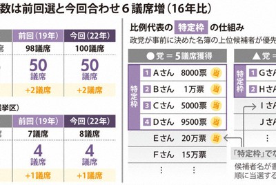 参院選 野党系候補、21の「1人区」で競合か 前回は一本化