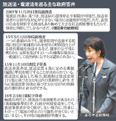 放送局が政治的公平性を欠く放送を繰り返せば、電波停止を命じる可能性があるという高市早苗総務相の発言に関し、安倍晋三首相は国会で「法令について従来通りの一般論を…