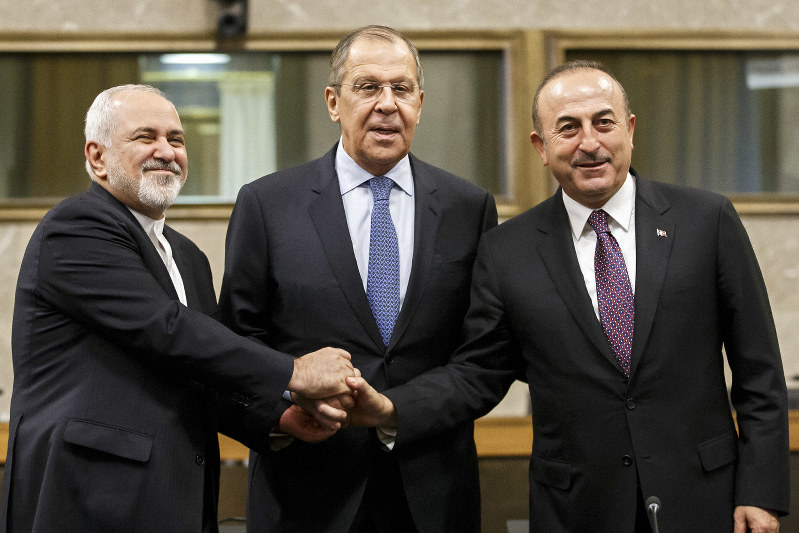 GENEVA (AP) -- The foreign ministers of Russia, Iran and Turkey agreed Tuesday to facilitate convening the first session of a committee to draft a new Syrian constitution early next year, saying they hoped it will lead to the launch of a "viable and lasting" peace process.