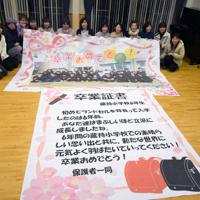 新型コロナウイルス感染拡大防止のため、内容を縮小して行われる卒業式を少しでも華やかにしようと、名張市立蔵持小学校(同市蔵持町原出)を卒業する6年生の母親らが巨…