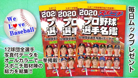 毎日ムック「2020スポニチ プロ野球名鑑」をプレゼント 毎日ムック「2020スポニチ プロ野球名鑑」を5名様にプレゼントを5名様にプレゼントします。【応募締切】2020年4月2日(木)