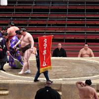 横綱・白鵬の取組で、1本しか掲げられなかった懸賞旗=エディオンアリーナ大阪で2020年3月9日、猪飼健史撮影